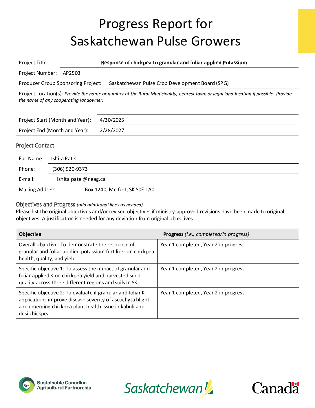 Response of Chickpea to Granular and Foliar Applied Potassium (Interim)